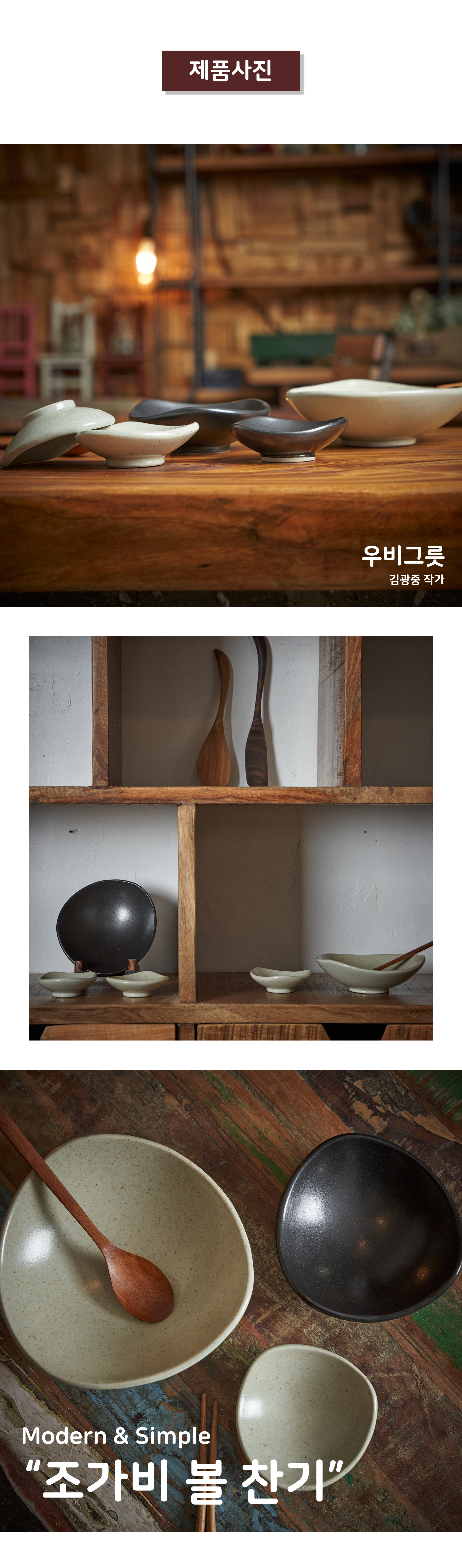 | 핸드메이드 도자기 그릇은 일반적인 공산품과 다릅니다. 가마의 분위기, 매번 달라지는 흙의 속성, 유약의 미세한 비율등 셀 수 없는 많은 요소로 인하여 끊임없이 요변이 일어나는 것이 핸드메이드 도자기 입니다. 상세 페이지와 다른 색상톤, 철분점과 돌기, 기포자국, 물레 형성자국, 가마에 닿는 바닥면의 흠집, 색배임 등등 핸드메이드 그릇 고유의 특징에 대하여 민감하신 분은 구매전 다시 한 번 고려하여 주시기 바랍니다. 온라인 쇼핑몰 특성상 사진이 본래의 제품과 100% 똑같이 나온다고 말씀드릴 순 없습니다. 항상 실제 제품과 같아 보이도록 최선을 다하고 있지만, 촬영 당시의 한 두개의 모델로 촬영된 제품과 꾸준히 생산되며 재입고되는 제품들은 요변에 따라 차이점이 날 수 밖에 없음을 이해해 주시기 바랍니다. 또한, 제품을 검색하는 모니터, 핸드폰의 종류에 따라서도 색상의 차이가 달라지니 이 점 참고하시기 바랍니다. |
