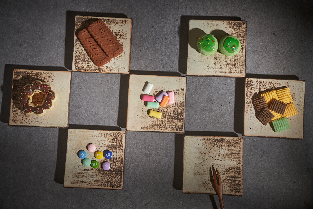 감각적인 플레이팅 가능 작은 찬을 느낌있는 배치로 특이하고 편안한 스타일로 플레이팅이 가능합니다. 위에 설명한 기믹 부분의 연장선과 같지만, 몇번을 강조해도 아쉽지 않은 느낌의 유니크한 접시라 정말 독특하게 활용이 가능한 매력적인 접시입니다. 사진 속의 간단한 디저트 외에도, 한식 또는 일식 등 다양한 종류의 음식들과의 궁합도 상당히 좋기 때문에 평소에 소량의 찬들로 식탁을 꾸미는 분들께 강력히 추천합니다. |