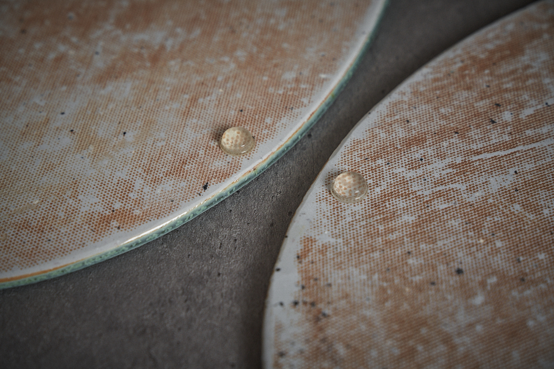 기포 및 철분 요변 제품 표면에 철분 및 유약 요변으로 인한 응고된 기포자국 및 철분점, 철분꽃이 피어있습니다. 철분점은 도자기 그릇의 가장 흔한 요변으로, 때가 묻거나 녹이 슨게 아닌 작가의 의도적인 표현방법 입니다. 혜화토 대부분의 제품은, 이러한 철분 요변을 적극적으로 표현한 제품들 입니다. |