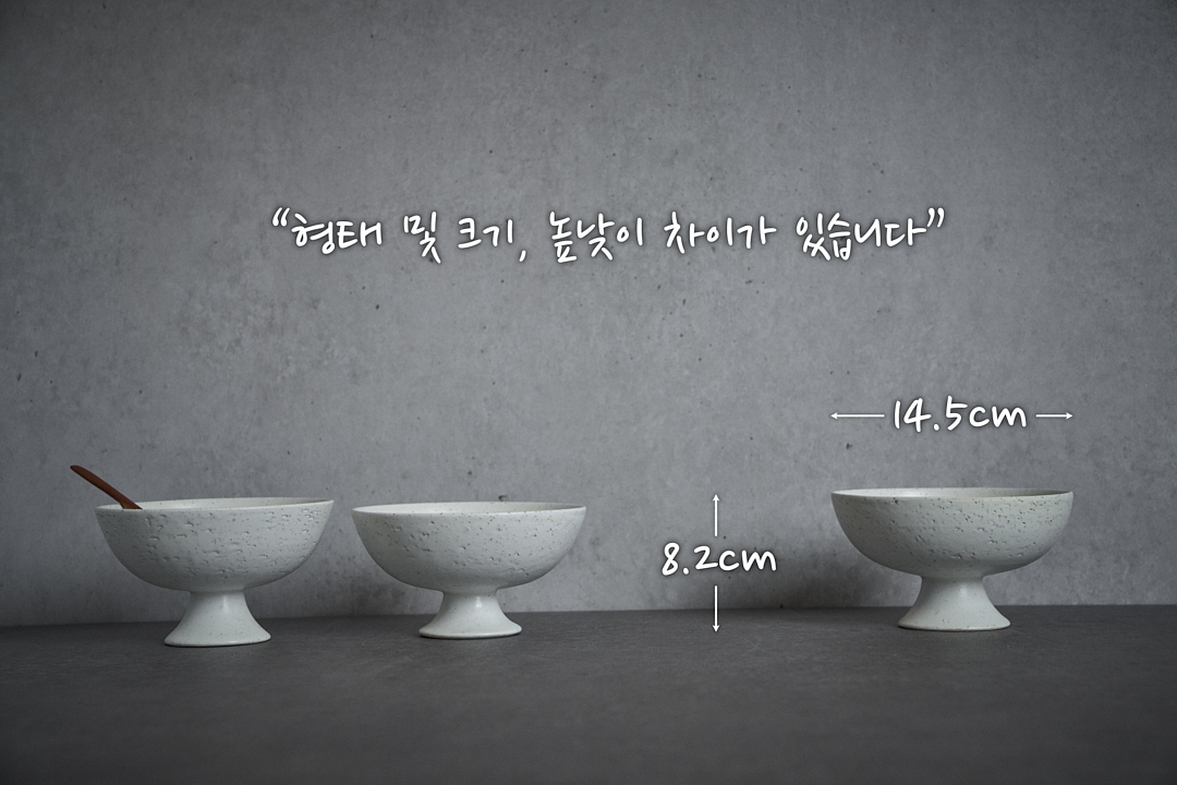 크기 및 형태, 높낮이 차이 핸드메이드 제품 특성상 제품의 형태 및 크기, 높낮이 차이가 있을 수 있습니다. 모두 동일한 형태로 제작하여도 가마 분위기, 가마에서의 위치에 따라 수축 및 팽창 과정에서 형태가 모두 다르게 태어나게 됩니다. | ![]() | |