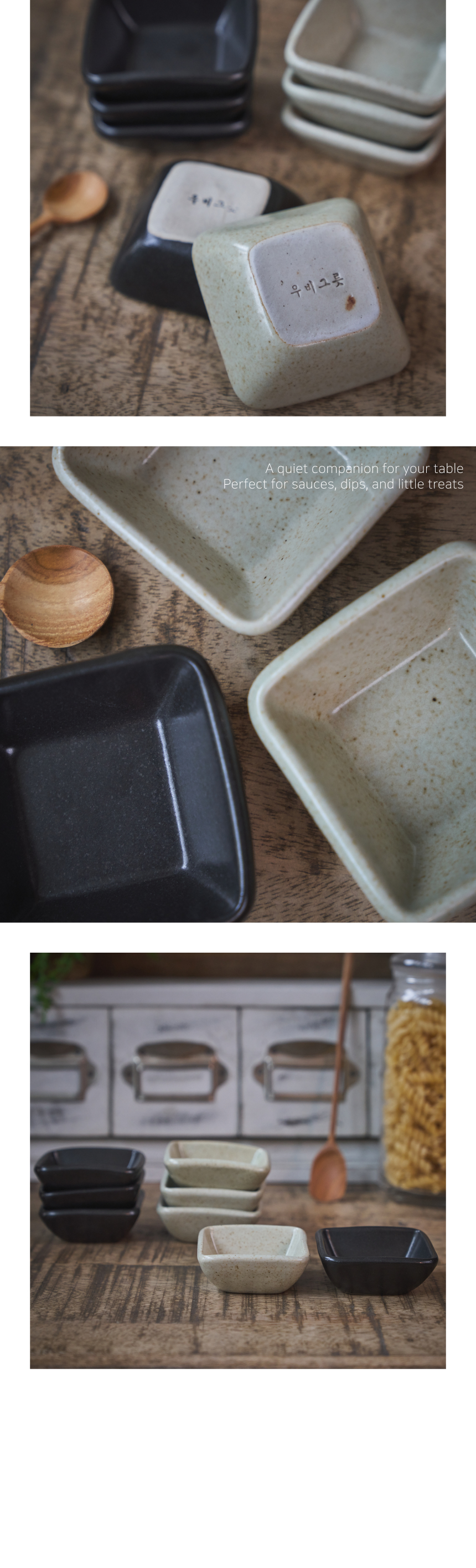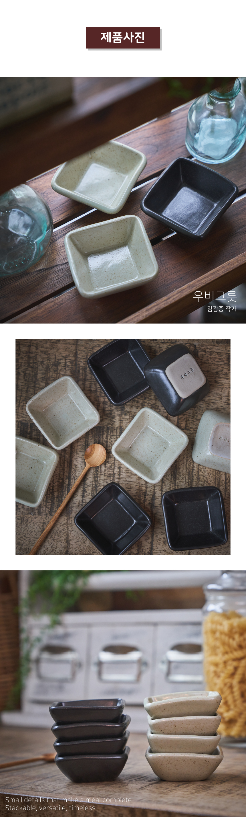 | 핸드메이드 도자기 그릇은 일반적인 공산품과 다릅니다. 가마의 분위기, 매번 달라지는 흙의 속성, 유약의 미세한 비율등 셀 수 없는 많은 요소로 인하여 끊임없이 요변이 일어나는 것이 핸드메이드 도자기 입니다. 상세 페이지와 다른 색상톤, 철분점과 돌기, 기포자국, 물레 형성자국, 가마에 닿는 바닥면의 흠집, 색배임 등등 핸드메이드 그릇 고유의 특징에 대하여 민감하신 분은 구매전 다시 한 번 고려하여 주시기 바랍니다. 온라인 쇼핑몰 특성상 사진이 본래의 제품과 100% 똑같이 나온다고 말씀드릴 순 없습니다. 항상 실제 제품과 같아 보이도록 최선을 다하고 있지만, 촬영 당시의 한 두개의 모델로 촬영된 제품과 꾸준히 생산되며 재입고되는 제품들은 요변에 따라 차이점이 날 수 밖에 없음을 이해해 주시기 바랍니다. 또한, 제품을 검색하는 모니터, 핸드폰의 종류에 따라서도 색상의 차이가 달라지니 이 점 참고하시기 바랍니다. |
