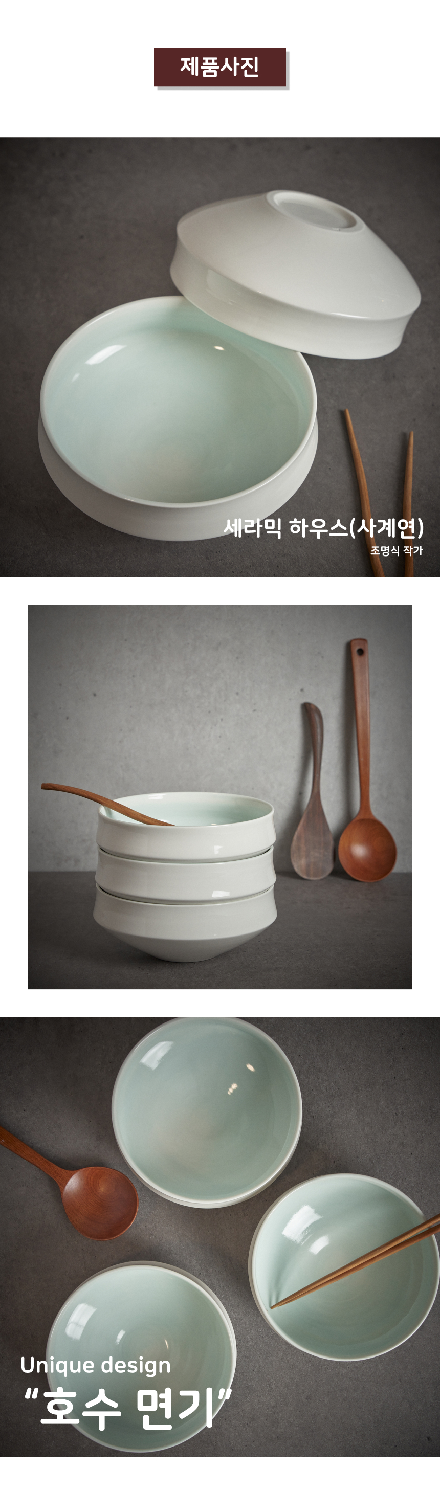 | 핸드메이드 도자기 그릇은 일반적인 공산품과 다릅니다. 가마의 분위기, 매번 달라지는 흙의 속성, 유약의 미세한 비율등 셀 수 없는 많은 요소로 인하여 끊임없이 요변이 일어나는 것이 핸드메이드 도자기 입니다. 상세 페이지와 다른 색상톤, 철분점과 돌기, 기포자국, 물레 형성자국, 가마에 닿는 바닥면의 흠집, 색배임 등등 핸드메이드 그릇 고유의 특징에 대하여 민감하신 분은 구매전 다시 한 번 고려하여 주시기 바랍니다. 온라인 쇼핑몰 특성상 사진이 본래의 제품과 100% 똑같이 나온다고 말씀드릴 순 없습니다. 항상 실제 제품과 같아 보이도록 최선을 다하고 있지만, 촬영 당시의 한 두개의 모델로 촬영된 제품과 꾸준히 생산되며 재입고되는 제품들은 요변에 따라 차이점이 날 수 밖에 없음을 이해해 주시기 바랍니다. 또한, 제품을 검색하는 모니터, 핸드폰의 종류에 따라서도 색상의 차이가 달라지니 이 점 참고하시기 바랍니다. |