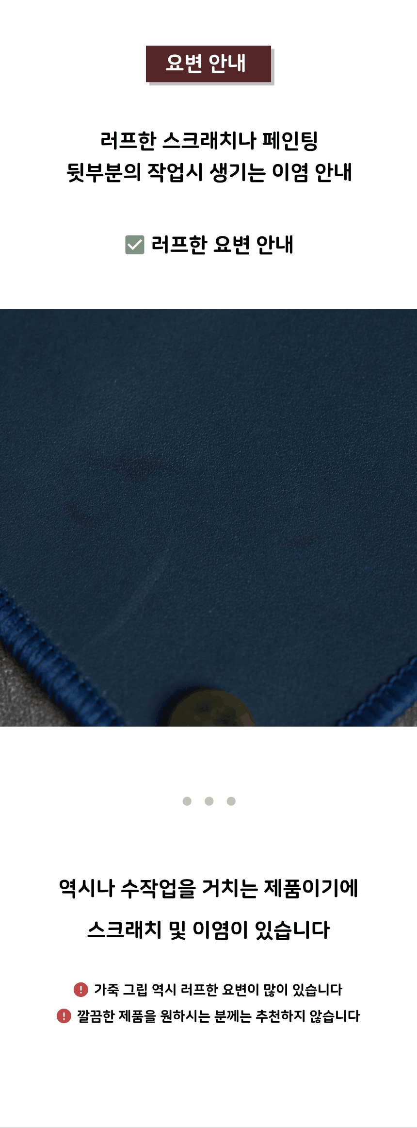 | 핸드메이드 도자기 그릇은 일반적인 공산품과 다릅니다. 가마의 분위기, 매번 달라지는 흙의 속성, 유약의 미세한 비율등 셀 수 없는 많은 요소로 인하여 끊임없이 요변이 일어나는 것이 핸드메이드 도자기 입니다. 상세 페이지와 다른 색상톤, 철분점과 돌기, 기포자국, 물레 형성자국, 가마에 닿는 바닥면의 흠집, 색배임 등등 핸드메이드 그릇 고유의 특징에 대하여 민감하신 분은 구매전 다시 한 번 고려하여 주시기 바랍니다. 온라인 쇼핑몰 특성상 사진이 본래의 제품과 100% 똑같이 나온다고 말씀드릴 순 없습니다. 항상 실제 제품과 같아 보이도록 최선을 다하고 있지만, 촬영 당시의 한 두개의 모델로 촬영된 제품과 꾸준히 생산되며 재입고되는 제품들은 요변에 따라 차이점이 날 수 밖에 없음을 이해해 주시기 바랍니다. 또한, 제품을 검색하는 모니터, 핸드폰의 종류에 따라서도 색상의 차이가 달라지니 이 점 참고하시기 바랍니다. |